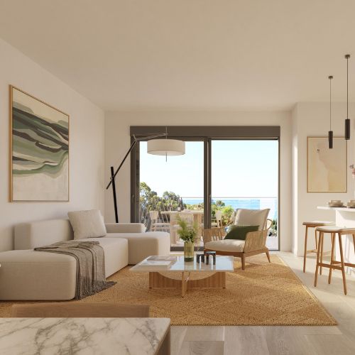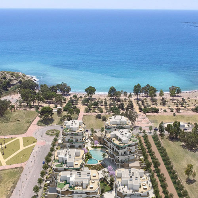 100 meters from the sea! Private urbanization of 1, 2 and 3-bedroom apartments, penthouses and ground floors, designed down to the smallest detail. Spacious and bright spaces are perfect for relaxing and enjoying the views on its large terraces. This promotion has a swimming pool, gardens, children’s area, equipped gym, sauna and steam bath.Prices from 480.000€.