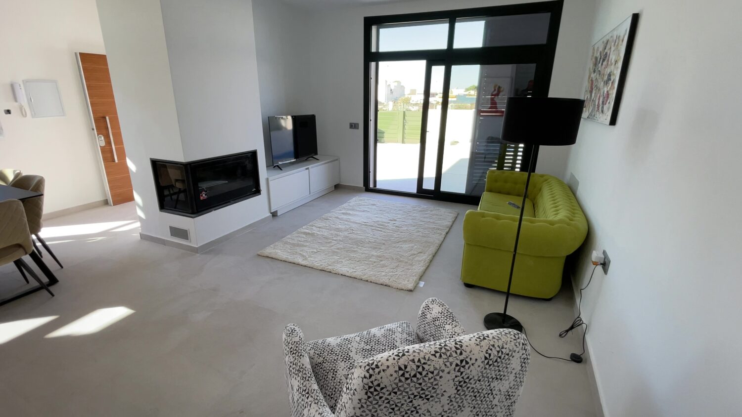New build independent and semi detached villas in Daya Nueva. Dining/living room with fire place and open plan kitchen, 3 bedrooms, 3 bathroom and toilet, terraces, private swimming pool and community pool. Price: 359.000€ .