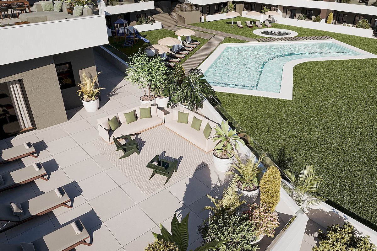 The communal swimming pool will measure an impressive 195 m2. Other communal facilities will include a children’s playground and an adult outdoor exercise gym. This is a completely closed and secure residential with parking and storage rooms. Ideal for family holidays, these apartments are also large enough for permanent living.
